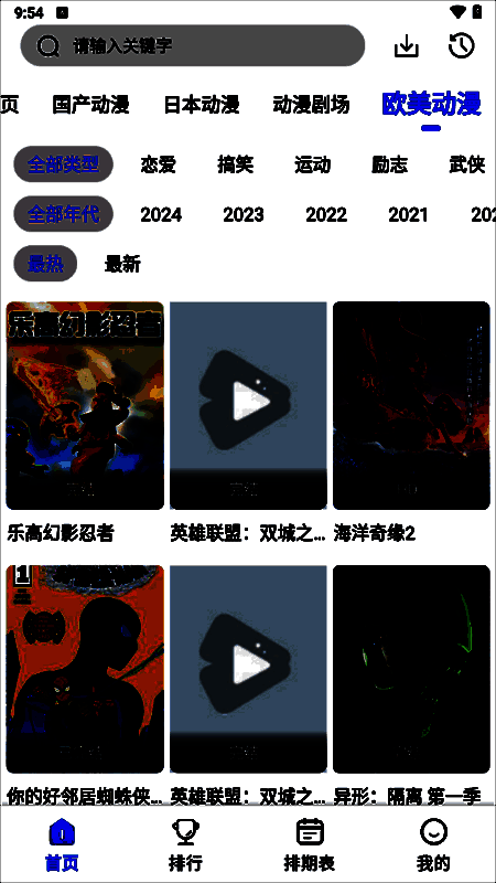 1、在软件首页,能看到国产动漫、日本动漫、动漫剧场、欧美动漫等板块。