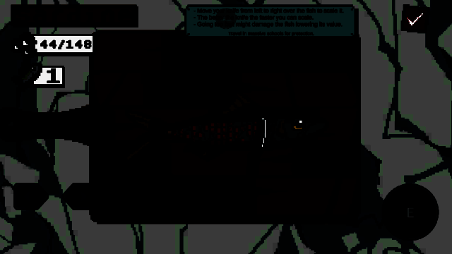 2、前往最左边的钓鱼台,点击“E”开始钓鱼。钓鱼线自动下降,用左右方向键控制方向,让鱼钩撞击鱼造成伤害,伤害足够后将鱼钓起。