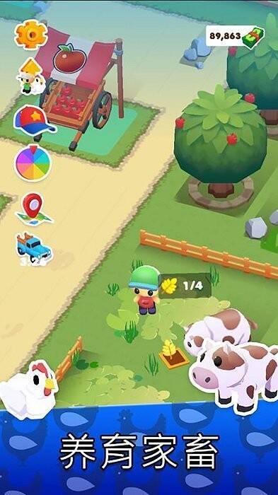 2、养殖动物:游戏中有鸡、牛、羊等多种可爱动物,玩家饲养它们可收获蛋、奶、羊毛等农产品。