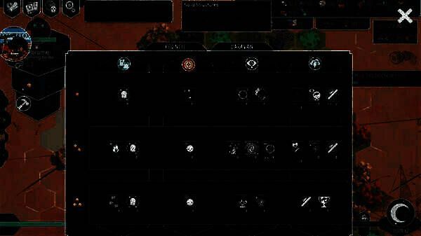 游戏中的可建造建筑分为材料类、食材类和附属建筑三类。前两类有永久式和移动式之分,附属建筑均为移动式。移动式建筑可在一局游戏中反复移动并带入下一立足点再建,但造价高;永久式无法带入下一场景,造价相对较低。每种建筑可进行两次优化获增益,商队优化效果多、整体增益大。