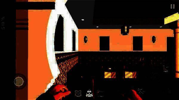 4、左下角的摇杆用于控制角色移动方向,右下角的上下箭头分别控制角色跳跃和蹲下。