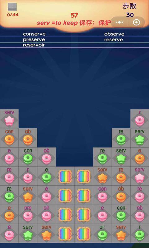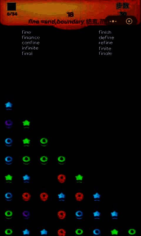 2、每个关卡的目标是消除指定数量的单词,完成任务后进入下一关。