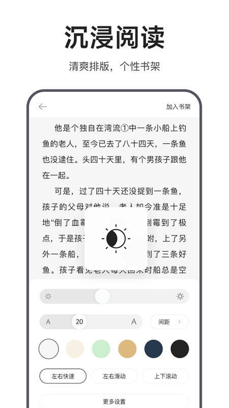 4、夜间模式支持:为保护用户视力,特别设置了夜间模式,能降低屏幕亮度、调节对比度,使夜间阅读更舒适。