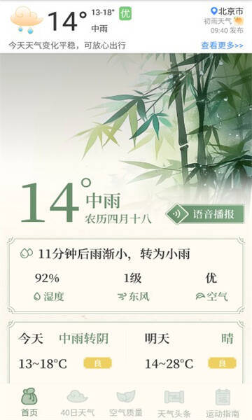 初雨天气无广告版是一款备受欢迎的免费天气查询软件。它具备智能精准的查询模式,能显示当前城市地区及街道的详细天气状况与变化,可及时获取各时段天气、温度、PM2.5、空气质量等信息,满足用户多样需求。支持语音播报,实时更新15天天气,方便出行。