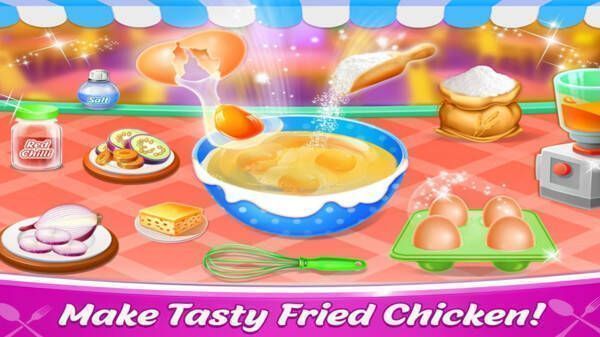 它带来真实的烹饪体验,从选材、调料到炸制,完整模拟油炸鸡制作过程。除了油炸鸡,还有多种快餐和小吃可供尝试。随着游戏进行,顾客需求增多,考验玩家的时间管理能力。玩家还能通过完成订单和任务获得奖励,用于升级厨房设施,提高烹饪效率以满足更多顾客需求。