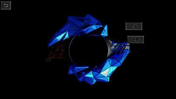 5、变身过程中,中间的水晶会展开露出显示屏,出现红色和蓝色圆圈旋转,不同的晶石特效都不一样的。