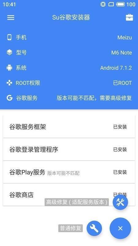 4、如果覆盖安装程序提示Google服务版本不匹配,它将智能地匹配合适的版本。如果当前服务正常,可以忽略此提示。