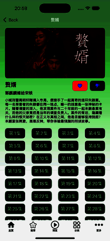 3、点击“搜索”,系统自动跳转至该剧详细信息展示界面。