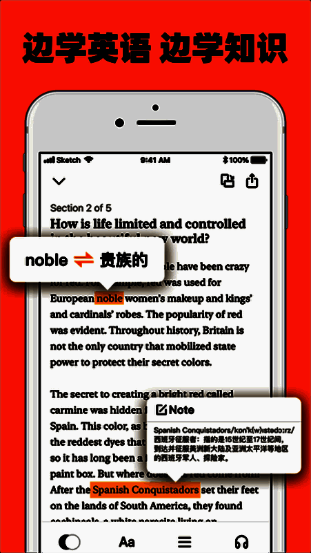 3、高效学习工具:内置词汇列表、笔记功能、高亮工具,便于用户在阅读中积累词汇、整理思路。