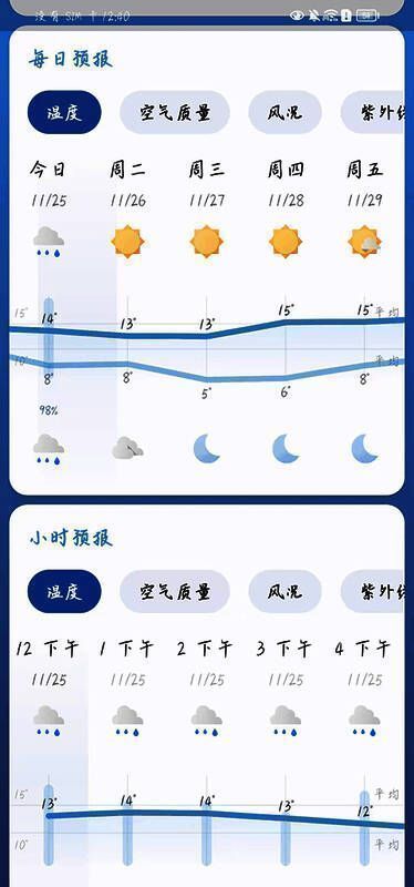 1. 呈现实时天气状况,涵盖温度、体感、风力、紫外线指数、湿度等多项指标。