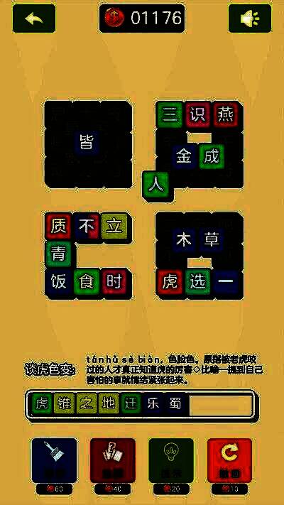 3. 遇到困难时,可使用提示道具快速找到正确成语。