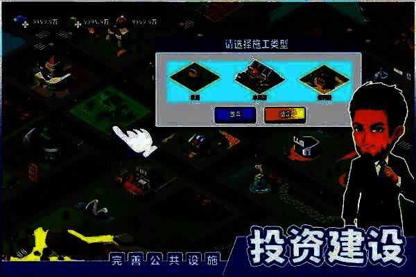 说回游戏,在《商业都市》中,你的首要任务就是疯狂赚钱。投资各大产业,开铺造厂,买地造楼,扩大商业版图。