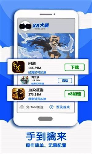 1、安装与启动:先在手机上下载并安装x8加速大师,接着启动软件并选择要加速的游戏。