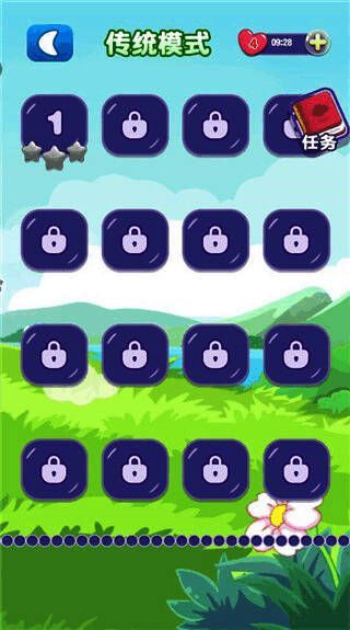 需在规定时间内消灭同一图案,完成消除任务;有炸弹、时钟、旋转积木等各类道具与特殊积木,增强游戏乐趣;游戏背景丰富多样,如花园、海滩、城市,各场景图案美丽独特。