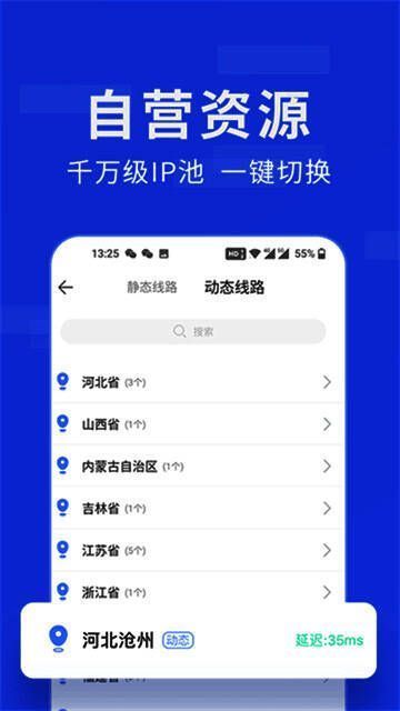 2. 覆盖全国大量IP资源,用户可一键两秒轻松切换,满足多样网络需求。