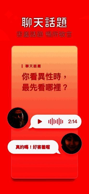 聊天吧安卓版是一款年轻男女在线即时社交应用。它能让附近的单身男女通过文本、语音、图片等快速配对,实现实时互动,拉近彼此距离,总有一人愿陪你相伴。