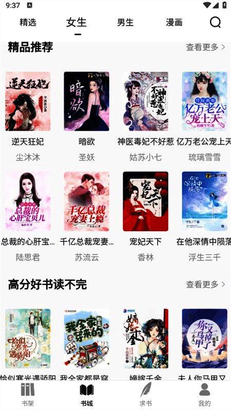 3. 书架功能:可在书架添加心仪书籍,随时开启阅读。