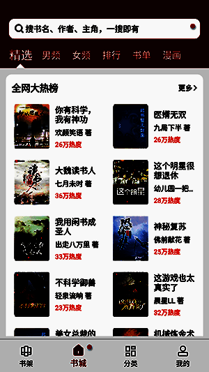 可根据用户性别提供差异化推荐,男版和女版各有特色。与官网数据同步,保证小说及时更新。提供多种阅读模式,如日间、夜间、护眼模式,保护视力。支持自定义阅读设置,打造专属阅读空间。