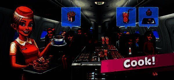 游戏目标是在有限时间满足乘客多样需求。先准备饭菜,如将汉堡、果汁等放至相应烹饪位置,烹饪时显示剩余时间。游戏设有食物准备区和客舱区,玩家在准备区备餐,通过点击右按钮切换到客舱,了解需求后回准备区准备。