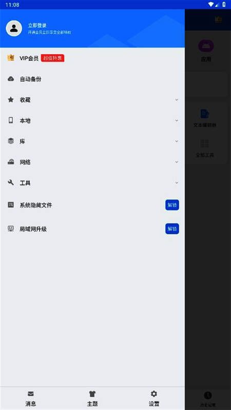 该软件免费为用户解锁VIP特权、移除广告、提供主题包等,经测试有效,可放心下载,是安全的安卓手机文件管理工具。界面简洁,功能全面,能查看压缩文件内容、播放视音频、查看隐藏文件等,还可远程管理电脑文件,支持免费定制,实现多功能管理。