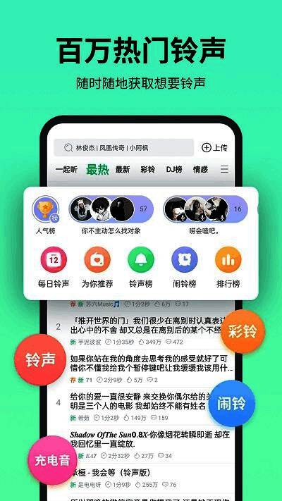 涵盖广泛的流行音乐、电视剧等铃声资源,满足不同口味。