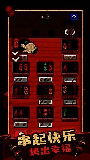 2、玩家只需把三个相同串串放到一个烤肉盘就能完成消除。