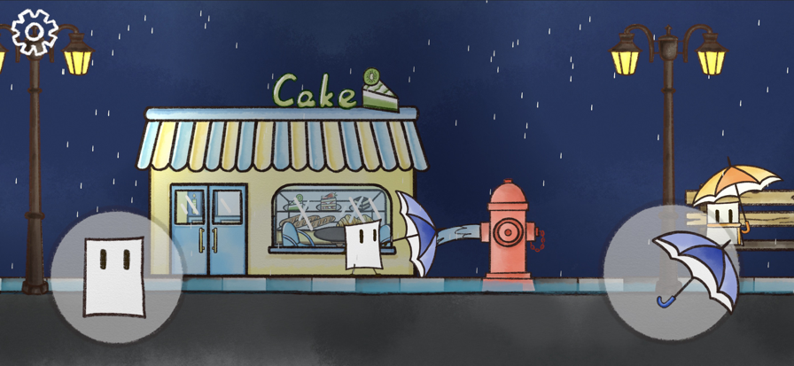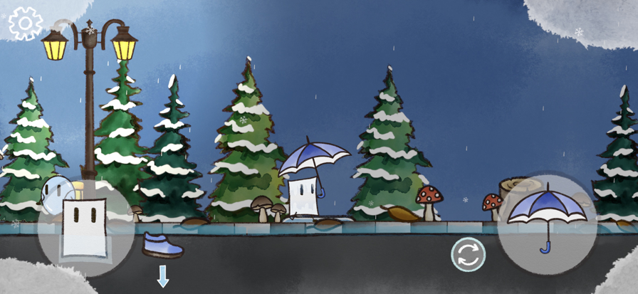 创新双摇杆协同操作:左摇杆控制纸人移动,右摇杆精准调节伞面朝向与倾角——面对斜风骤雨、飞驰车辆或高空滴落,需预判雨势动态调整伞位。黄色气泡NPC不仅提供线索,更会随玩家通关次数解锁不同对话分支;部分关卡隐藏“晴空彩蛋”,需在特定时段连续3次完美挡雨方可触发,增强探索深度与重玩价值。