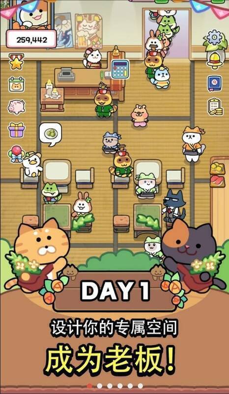 玩家可提高销售收入,雇佣心仪员工,扩大店铺规模,用心管理小餐馆。能迎接各种口味的小动物,为客人提供优质服务,客人还能在游戏中邂逅其他可爱动物。