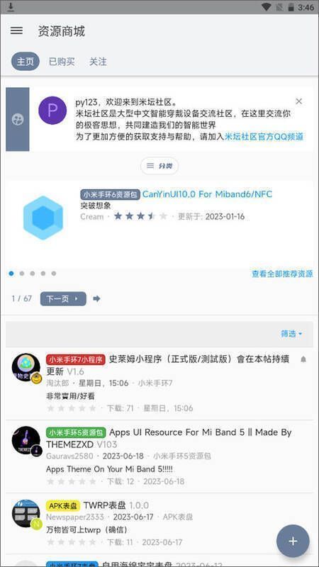 米坛社区是一款专注于智能穿戴设备资源交流的社区软件,吸引了众多智能手表和智能数字产品爱好者。在这里,用户注册登录后,不仅能在主页浏览智能可穿戴设备的最新资讯,掌握行业动态和实用技巧,还能在论坛发布各类帖子,与其他爱好者交流使用经验。软件设有资源商城,用户可按需下载手表应用。