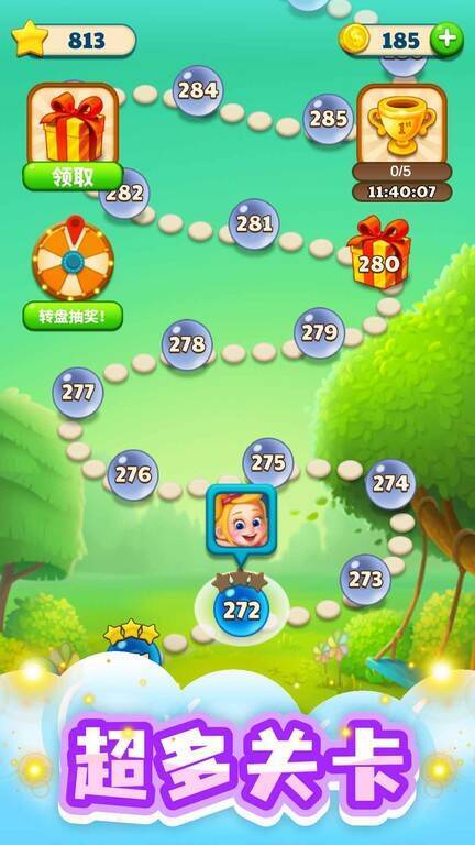 玩家通过触控屏幕发射泡泡,把相同颜色泡泡组合,三个或以上相连时消除并得分。每个关卡有特定消除目标,如消除一定数量泡泡、完成目标泡泡消除或在规定步数内完成任务。游戏有时间或步数限制,增加紧张感。随着关卡推进,布局和难题更复杂,需合理规划发射角度和时机才能过关。