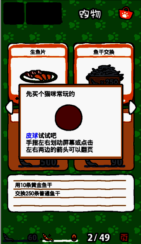 4. 猫猫离开会留下小鱼干,可用于购买其他食物和玩具。