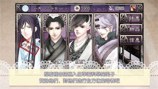3、若只求圆满结局(HE),专注攻略一个角色,好感度达标即可,考不考进士、有无5万金都没关系。
