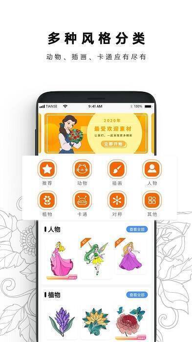 1、海量精美画作:包含动物、花卉、风景、卡通、人物等主题,满足多样需求。