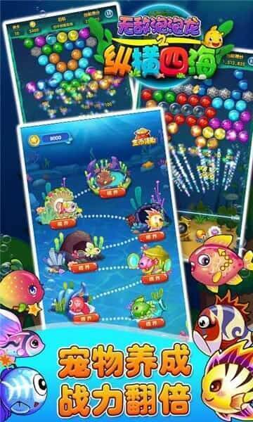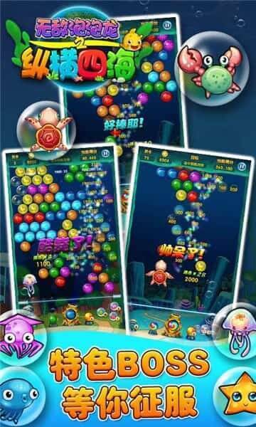 无敌泡泡龙之纵横四海游戏是一款极具趣味性的经典泡泡龙消除类休闲游戏。玩家发射彩色泡泡,将同色泡泡组合成三颗或以上即可消除,目标是清除屏幕上全部泡泡,防止泡泡堆积到危险区域。