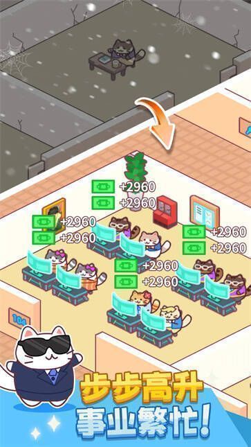 1. 猫咪化身劳动者,众多猫员工帮玩家盈利,带来独特商业体验。