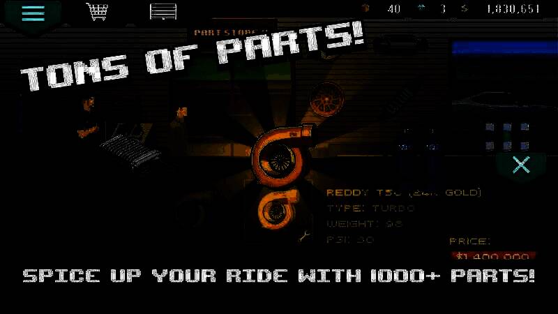 - 提供数十种不同像素赛车供玩家收集与升级,每辆车操控特性和性能参数独特。