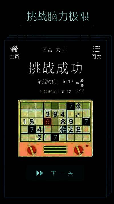 1、限时挑战:每关都有时间限制,玩家在限时内完成数独题目,解答越快,奖励越丰厚。