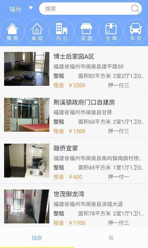 2、支持整租、合租、日租,房源类型包括二手房、写字楼、商铺、车位、厂房、仓库、土地等。