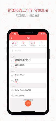 【任务】支持任务安排、项目管理,具备提醒、重复功能,可设置任务预计番茄数。