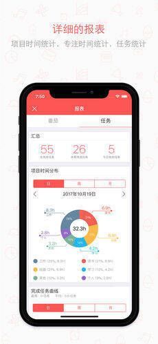 【报表】能统计番茄使用时间和数量,展示今天/近7天番茄时间分布甘特图,呈现日/周/月三个维度执行番茄数和完成任务数量的趋势图,还可统计完成任务数量和项目时间分布。