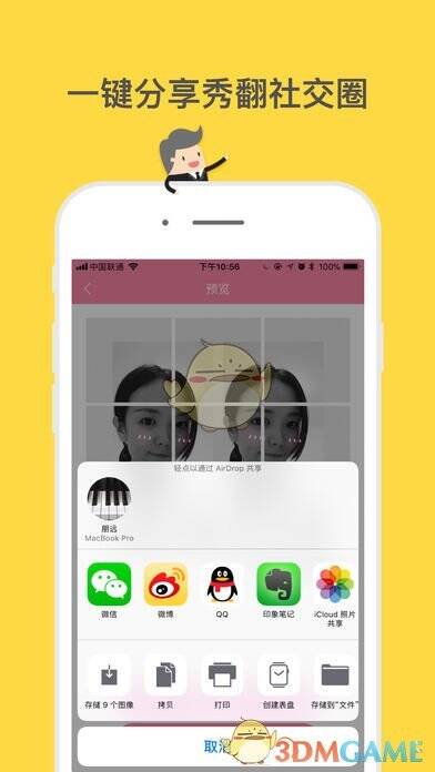 九宫格拼长图:把首张图片均匀分成若干小图,点击下一步后,将小图和另外选的四张图片拼接成长图。分享到朋友圈或微博后,外观是九宫格,点开就是对应的长图。