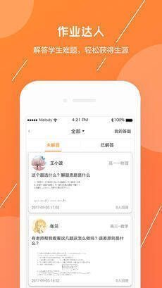 6、作业达人:快速为学生解答学习困惑,学生用手机就能找老师答疑,支持全学段、全科辅导。