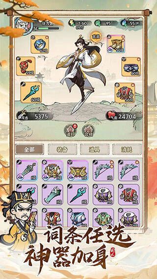 1、这款水墨画风的修仙肉鸽手游,玩法自由度高,是打发时间的优质之选。