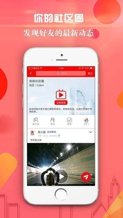 该应用基于地理位置构建社区圈,运用直播技术,达成7×24小时的社群直播与本地化社群互动。