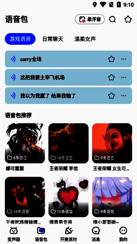 2、还有各种悦耳的语言包,让你大饱耳福,除了游戏语音,日常聊天、温柔女声应有尽有。
