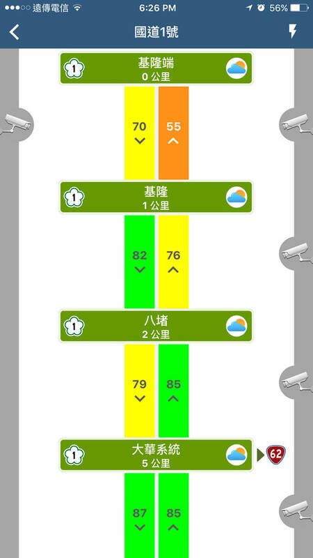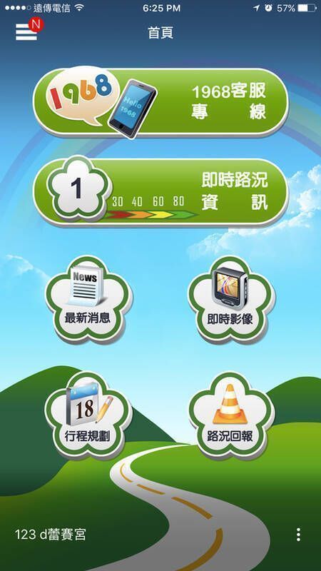 1. 开车时堵车最令人头疼,有了1968,能立刻知晓台湾各高速公路的当前路况信息,并用颜色表示路况。绿线表示路况平稳,红色或紫色表示交通拥塞。