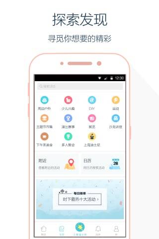 【探索发现】有详尽的分类,可就近参加活动,还有热门榜单,每一刻都能发现美好的生活。