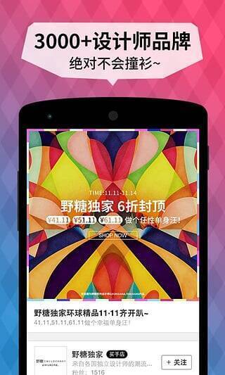 野糖 app 由主打时尚和设计的电商网站野糖网官方推出,风格定位为“一点甜,一点野”,主要面向 90 后、追求设计感的年轻人群。类似以特定风格锁定特定人群的快时尚平台,国外有 NastyGal、Modcloth,国内有暖岛、喜瓜、ujipin、wowsai 等。