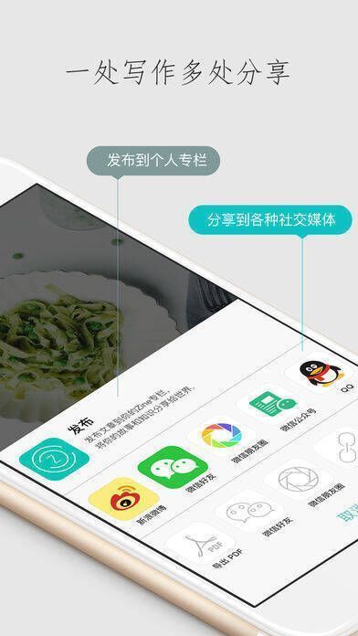 3、支持朋友圈、微博等社交分享,还能进行长图制作、PDF导出、微信公众号同步、印象笔记及豆瓣日记分享,真正实现“一处写作,多处分享”;