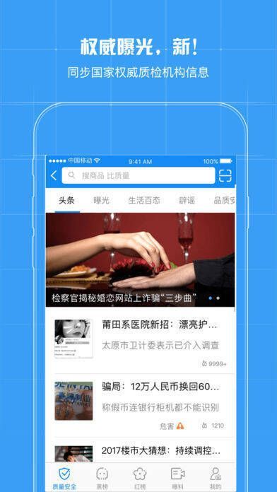 4、【权威质检曝光】同步食品药品监督管理部门的最新信息,提供权威的商品红黑榜。购物前扫一扫,让您购物更放心。